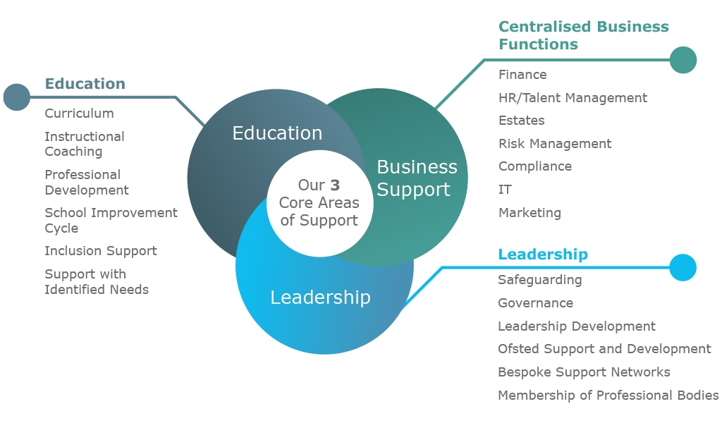 We believe that one of the major benefits of being in our partnership is the ability to centralise all business support. Central policies streamline procedures within all our partner schools and ensure consistency. Our Central Team of specialists in key business areas provide an infrastructure covering core business operations so that school leaders are free to really focus on developing the quality of education in their schools.
